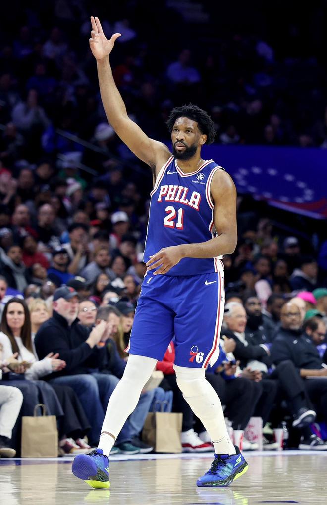 • 手感冰凉,恩比德前三节14投仅1中得8分3板2助1断1帽,但正负值+9